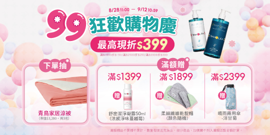 ▶活動門檻:訂單金額滿額$1,599