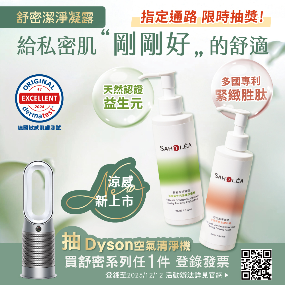即日起~2025/12/12 於寶雅實體門市、寶雅網路商店(POYA Buy寶雅線上買)、森歐黎漾官方網站、森歐黎漾蝦皮商城官方旗艦店,前述通路可開立購物明細之官方購物網等電商平台,單筆發票購買1瓶 (含) 以上森歐黎漾舒密潔淨凝露-190ml正貨 (款式不限),登錄即有機會抽中Dyson三合一涼暖空氣清淨機(一名)。