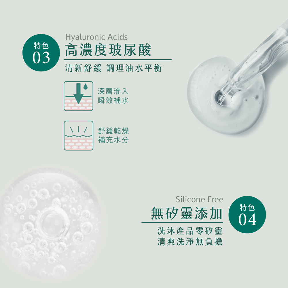 選用茶樹精油、玻尿酸、抗菌成分,對抗痘痘,多重補水和保水,肌膚Q 彈水嫩