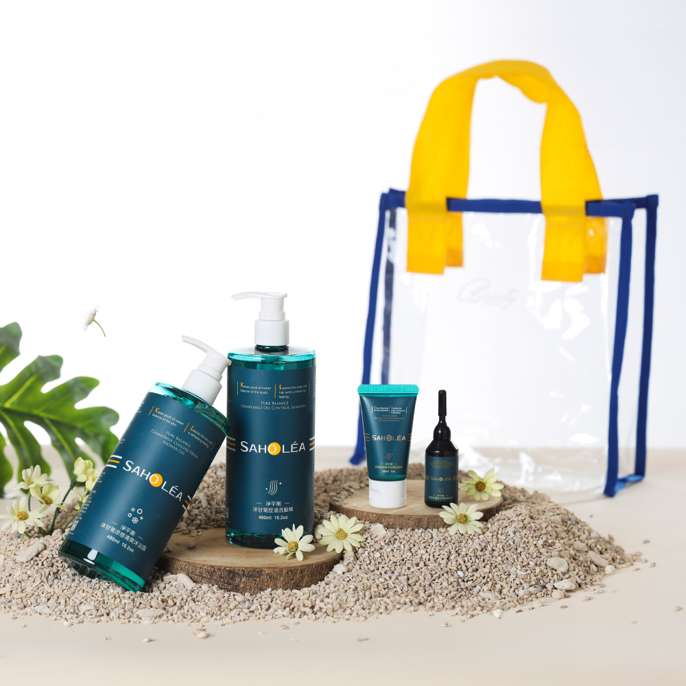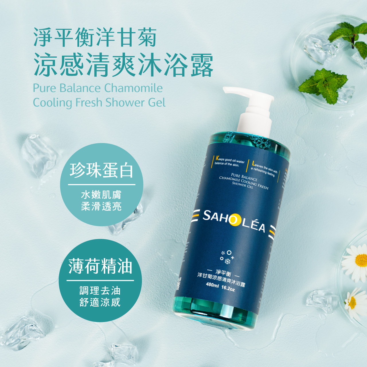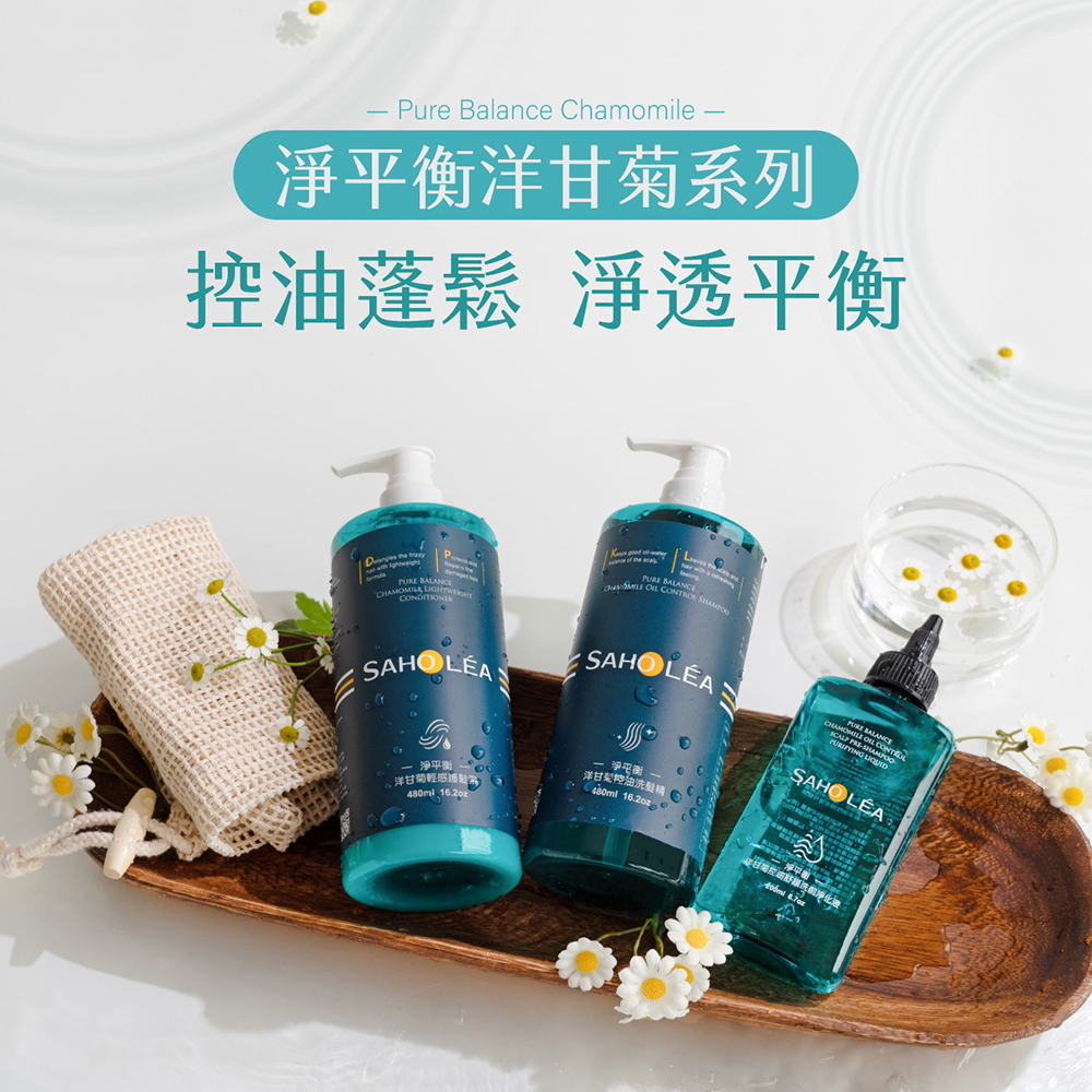 淨平衡洋甘菊控油洗髮精480ml+淨平衡洋甘菊涼感沐浴480ml+淨平衡茶樹淨化抗屑旅行組(勁涼洗前淨化液20ml+控油雙效抗屑洗髮精28ml)