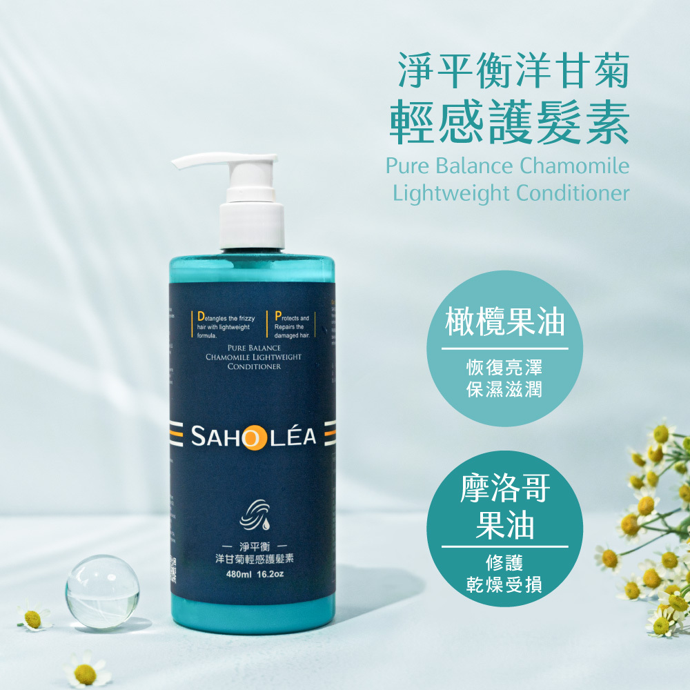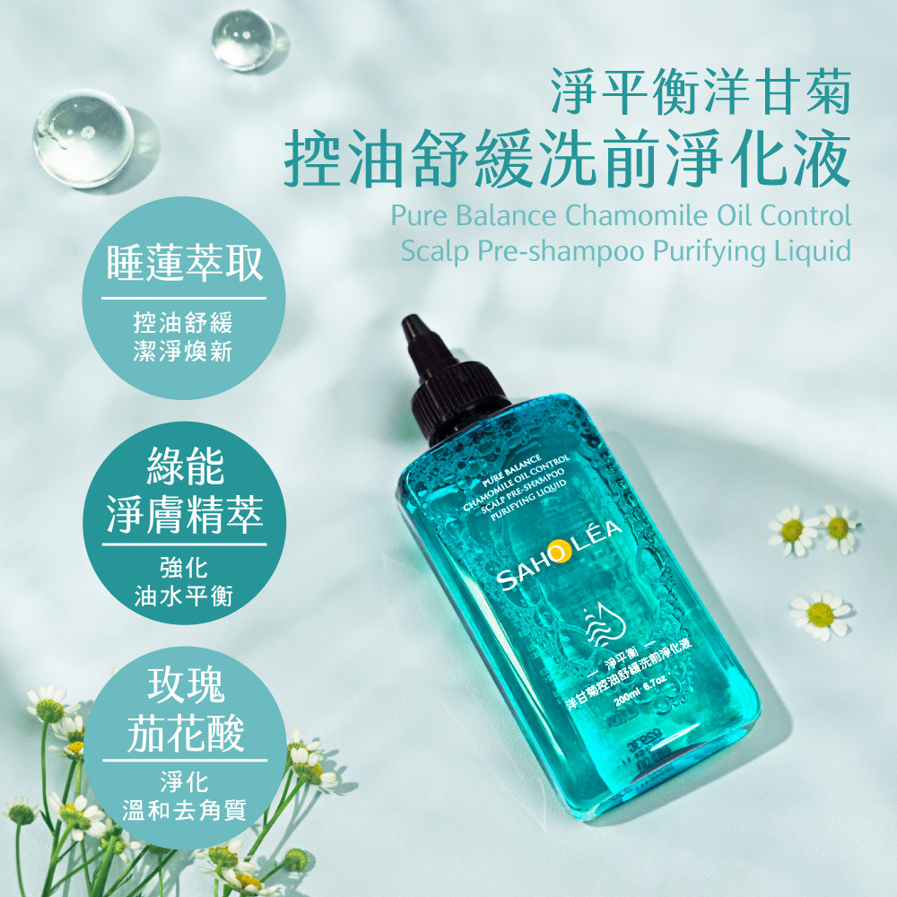 淨平衡洋甘菊系列,選用鮮萃洋甘菊、保養品級胺基酸,維持油水平衡,洗後清爽不黏膩,蓬鬆豐盈