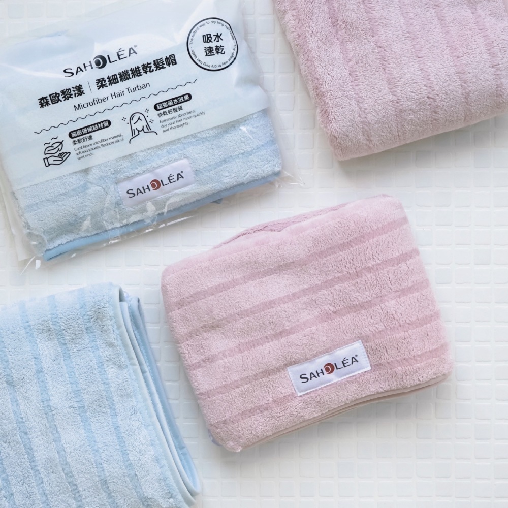 細緻珊瑚絨材質,柔軟舒適,超強吸水效果,打造光澤好髮質,置於頭髮上後捲起尾部,協助吸去多餘水分。