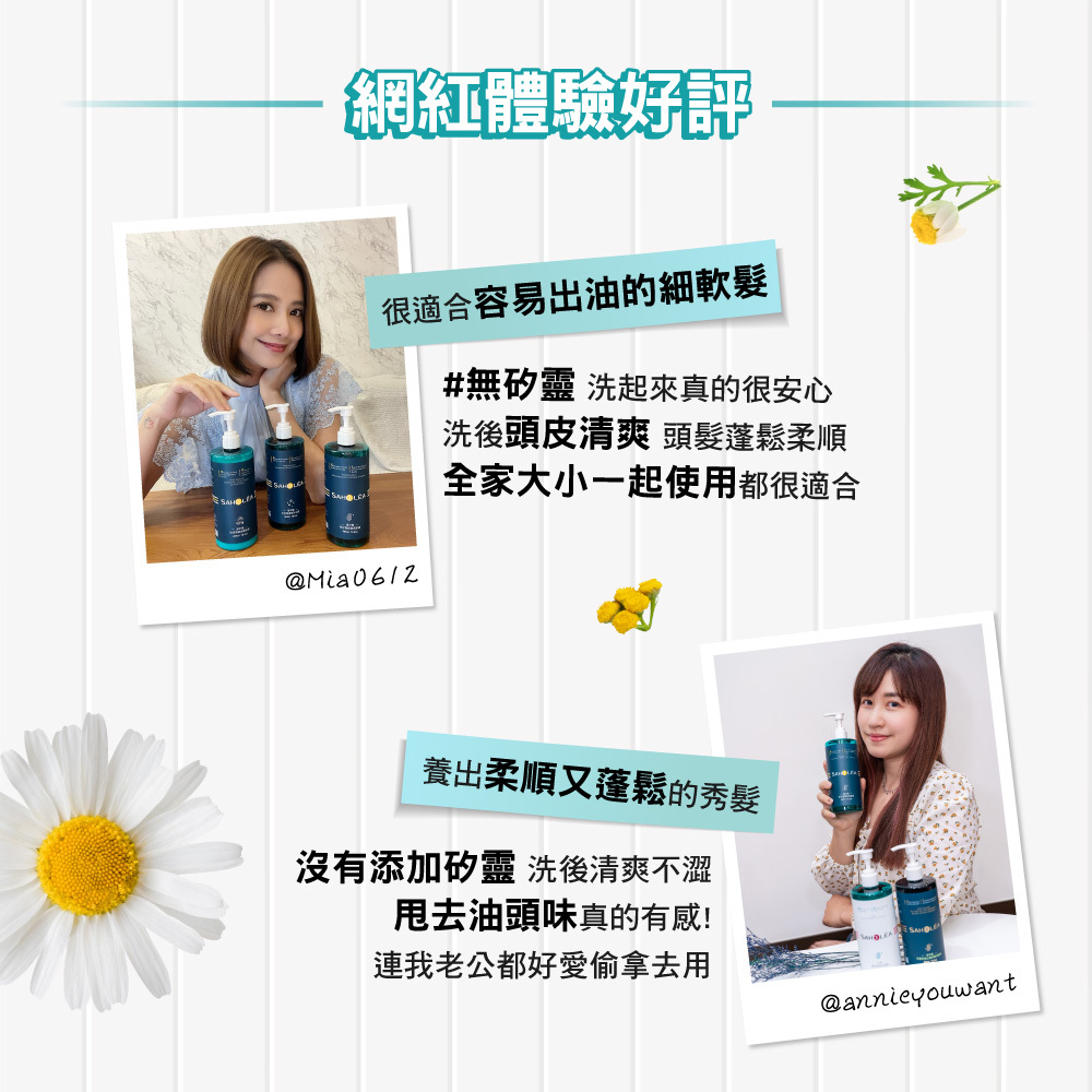 (淨平衡洋甘菊控油洗髮精 水漾薔薇潤澤洗髮精 絲絨牡丹護色洗髮精)