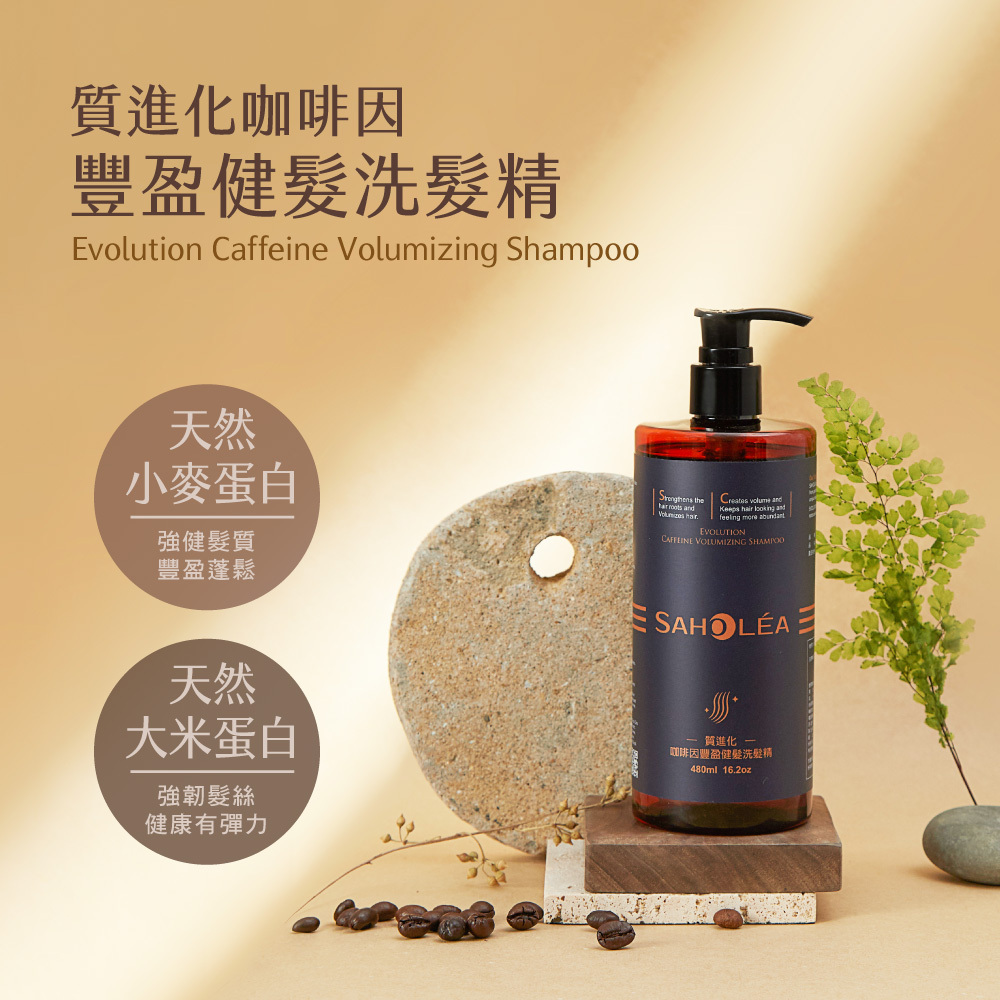 質進化咖啡因系列,添加健髮咖啡因、尾穗莧天然肽,溫和清潔強健髮根,洗後髮質健康有彈力